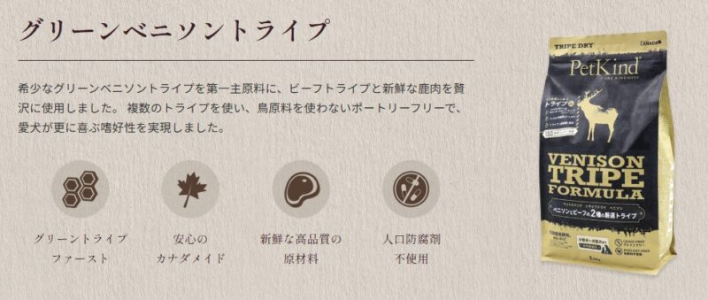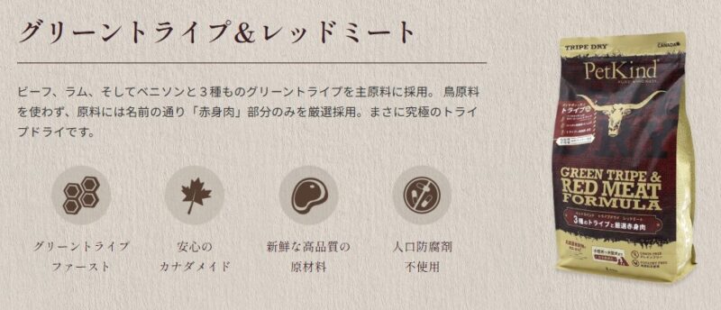 トライプ3種+複数の赤身肉+魚ミールという、“肉とトライプの全部乗せ”みたいな設計 です。