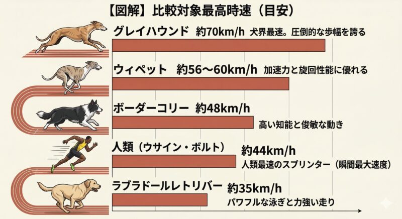 ウィペットの最高速度はどれくらい?他犬種や人類との比較